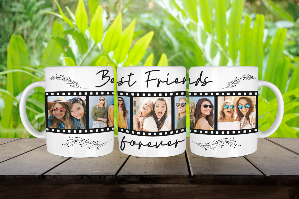 Enjoy your morning Coffee in this Best Friends Forever Photo 15oz ceramic Mug. Perfect gift for your bestie. Add 5 of your favorite pictures.