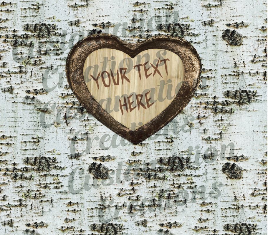 Custom Text Carved Heart Tree 20oz. Tumbler Available in Multiple Bark Color Options