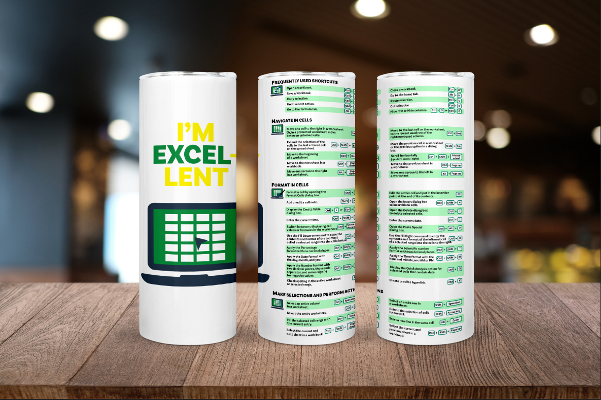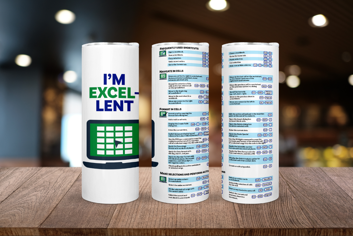 I'm EXCEL-lent Keyboard Shortcuts 20oz. Stainless steel Tumbler in PINK, BLUE or GREEN
