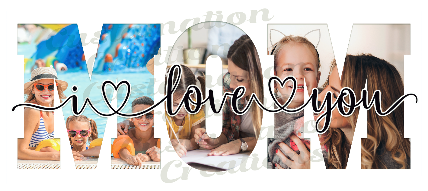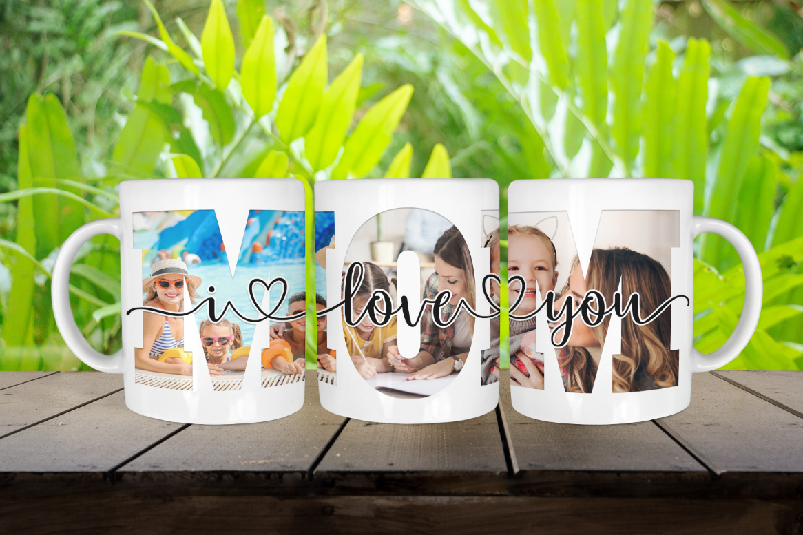 Enjoy your morning Coffee in this MOM i love you 15oz ceramic Mug. Perfect gift for Mother's day or just because. Add 3 of your favorite pictures.