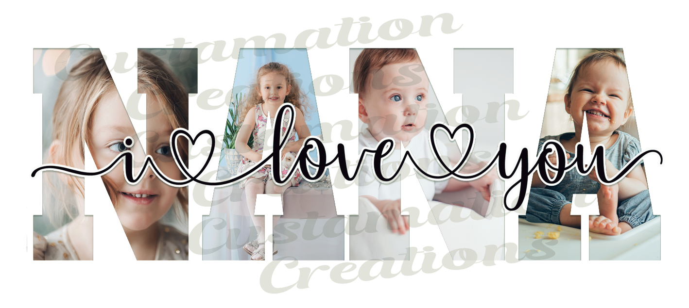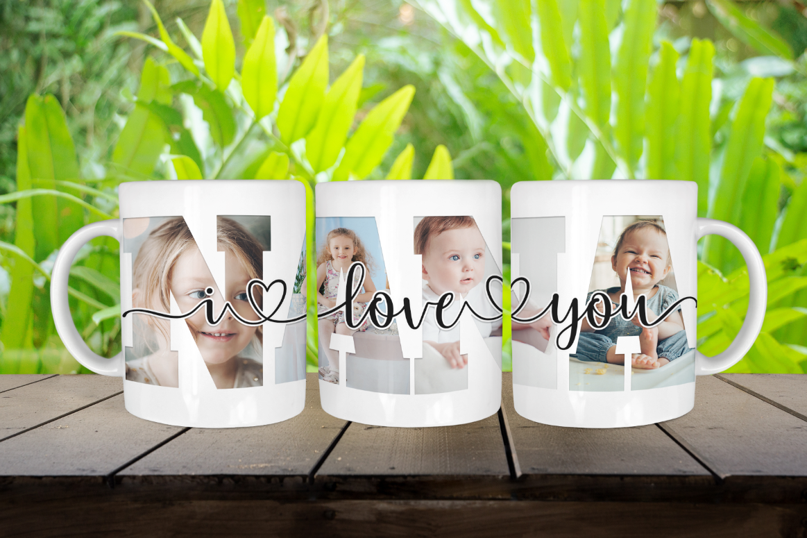 Enjoy your morning Coffee in this NANA i love you 15oz ceramic Mug. Perfect gift for Mother's day or just because. Add 3 of your favorite pictures.